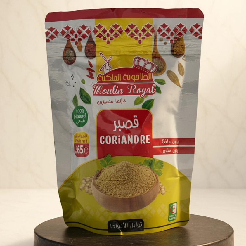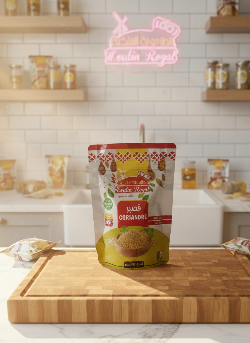 Depuis 1945, Moulin Royal vous offre les trésors de la nature, empreints d’authenticité et de pureté. Notre coriandre moulue est une invitation à explorer la richesse des saveurs et l’héritage ancestral dans votre cuisine. Chaque graine de coriandre est méticuleusement sélectionnée auprès des meilleures sources, puis délicatement moulue pour préserver ses huiles essentielles précieuses et son âme véritable. C’est la garantie d’une saveur d’antan qui ravive les souvenirs de repas chaleureux et conviviaux.Notre coriandre moulue se distingue par son bouquet aromatique unique, mêlant une chaleur terreuse à de subtiles notes citronnées et rafraîchissantes. Elle confère à vos préparations un équilibre parfait et une profondeur incomparable. Ingrédient secret de vos ragoûts, tajines, kabsas et marinades, elle transforme chaque plat en une œuvre d’art culinaire. Qu’il s’agisse d’un mets arabe traditionnel ou d’une touche orientale dans une recette du monde, cette épice sublime vos créations.Chez Moulin Royal, nous sommes fiers de vous offrir la qualité supérieure que vous méritez. Chaque sachet de notre coriandre moulue témoigne de notre engagement envers la pureté et l’authenticité. Conditionnée avec le plus grand soin pour garantir sa fraîcheur et sa puissance aromatique, notre coriandre n’est pas une simple épice; c’est une promesse d’expérience culinaire inoubliable, offrant à chaque bouchée un goût royal digne de votre palais raffiné. Laissez Moulin Royal vous guider dans votre voyage des saveurs et transformez votre cuisine en un véritable royaume des gourmets.