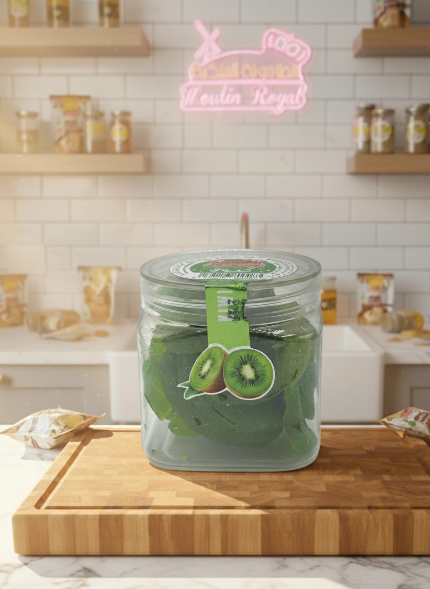 Des vergers tropicaux luxuriants où le soleil caresse chaque fruit, nous sélectionnons méticuleusement les kiwis les plus mûrs. Transformés avec l’expertise transmise depuis 1945 au sein de la famille Moulin Royal, chaque tranche de ce Kiwi Séché Premium est une invitation à un voyage gustatif inoubliable. Laissez-vous séduire par sa douceur naturelle, riche et concentrée, équilibrée par une pointe d’acidité rafraîchissante qui éveille délicatement les papilles. Ce n’est pas seulement un fruit séché, c’est la promesse d’une qualité authentique et d’une pureté exceptionnelle, signature de notre savoir-faire. Le Kiwi Séché Premium de Moulin Royal est le compagnon idéal de chaque instant. Que ce soit comme collation saine pour un regain d’énergie naturel, riche en vitamines essentielles, ou comme touche créative dans vos recettes, ses possibilités sont infinies. Imaginez-le sublimant vos bols de petit-déjeuner, ajoutant une saveur exquise et une texture légèrement croquante à vos yaourts, ou insufflant une note tropicale distinctive à vos pâtisseries et desserts. Il peut même surprendre agréablement vos salades, leur conférant une dimension nouvelle et rafraîchissante. Chaque morceau de notre kiwi séché incarne notre héritage familial et notre engagement indéfectible à offrir le meilleur, le plus pur, depuis nos origines à Laghouat jusqu’à votre table. Présenté dans un élégant pot en verre, il préserve non seulement sa fraîcheur et son arôme unique, mais constitue également un ajout raffiné à votre cuisine ou un cadeau de bon goût. Élevez vos plats du quotidien au rang d’œuvres d’art culinaires et offrez à vos sens une expérience royale unique avec le Kiwi Séché Premium de Moulin Royal.