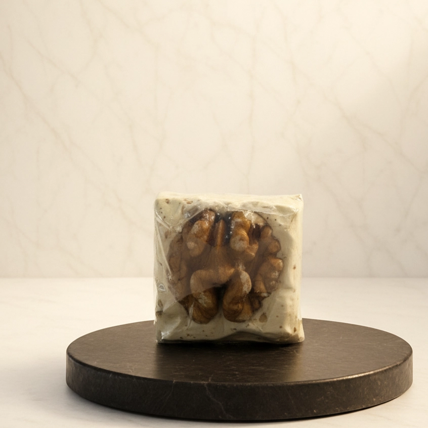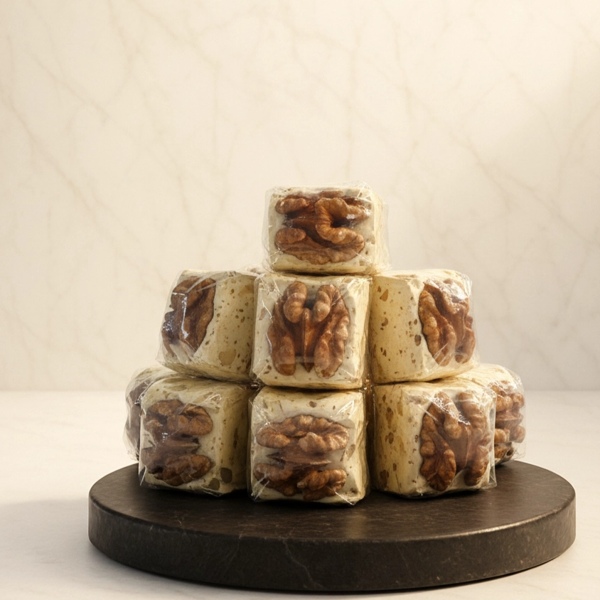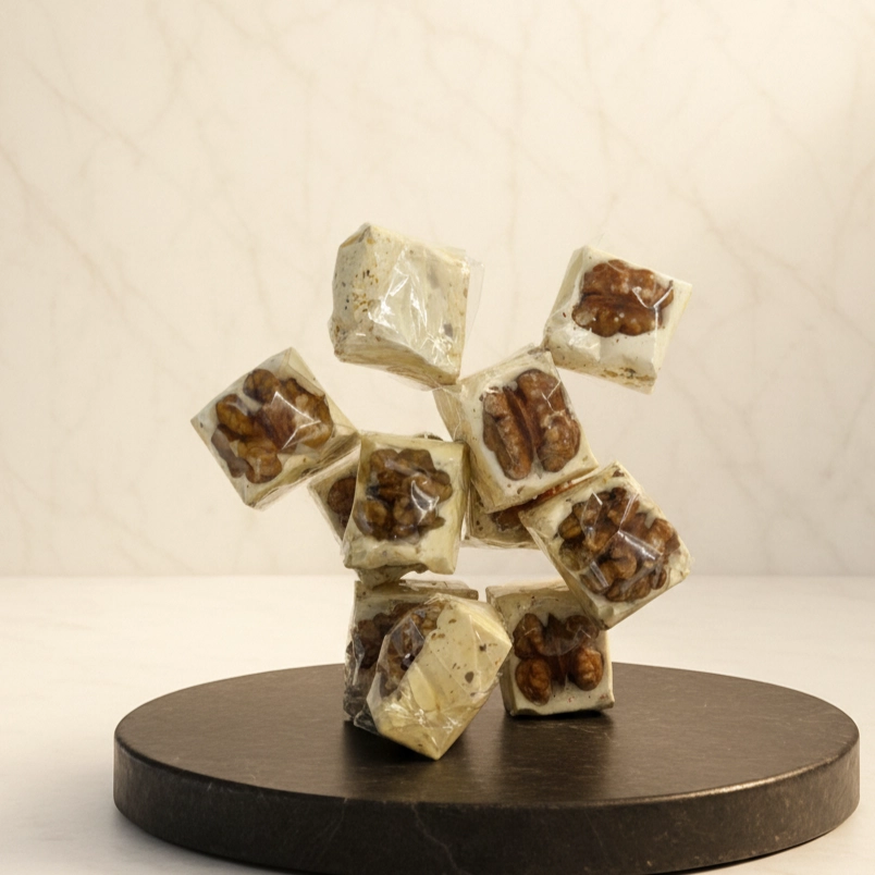 Succombez à la Jawziya, une nougatine fondante sublimée par des noix croquantes et authentiques. Une gourmandise royale pour un moment d’exception.