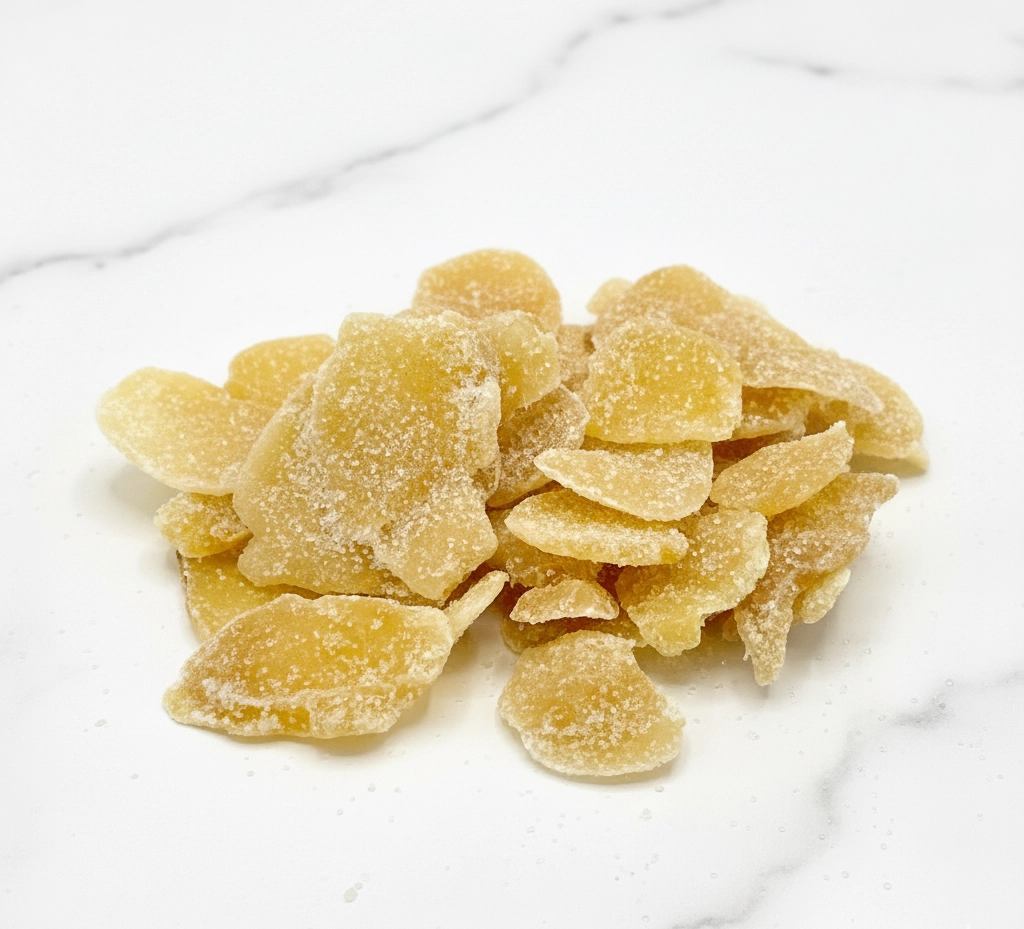 Succombez à la chaleur réconfortante et à la saveur exquise de nos tranches de gingembre confites, une touche royale pour vos sens.